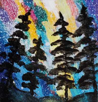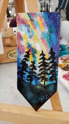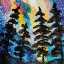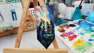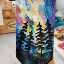 Магнит в форме прямоугольника с углом звёздным небом яркого свечения, звезды отражение нарисован акриловыми красками на дереве и покрыт лаком.