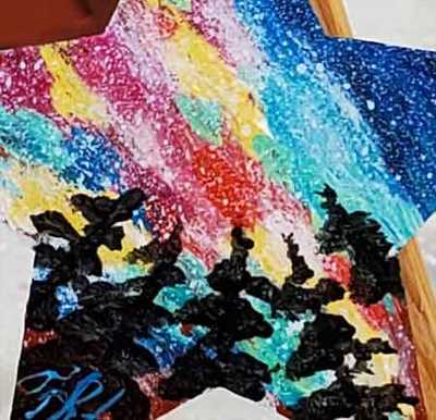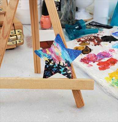 Магнит в форме маленькой звезды с красивым млечным путем и звездами по всему небу, звезды отражение нарисован акриловыми красками на дереве и покрыт лаком.