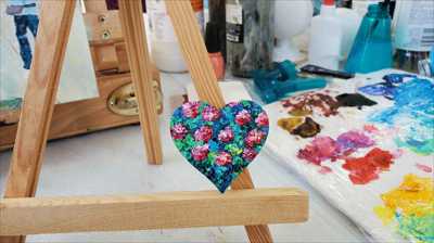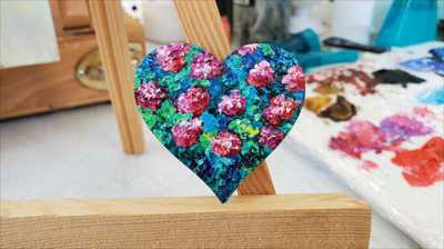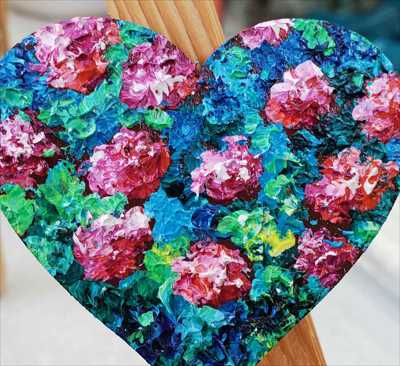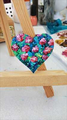 Магнит в форме маленького сердечка с розочками красными нарисован акриловыми красками на деревянной основе и покрыт лаком.
