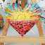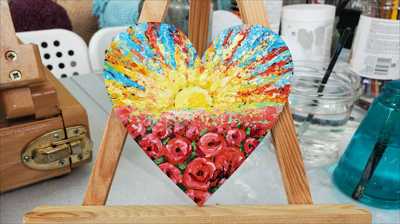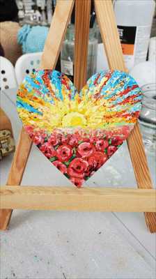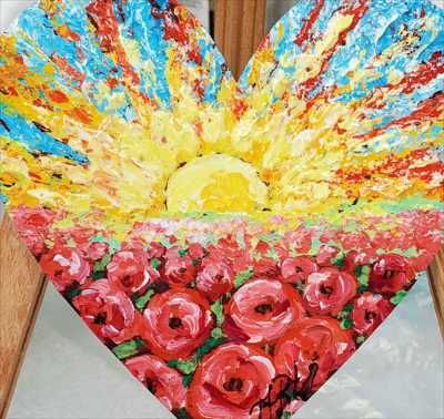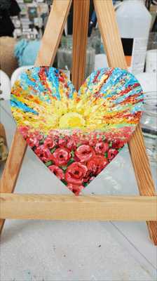 Большой магнит с солнцем нарисован акриловыми красками и мастихином на деревянной основе.