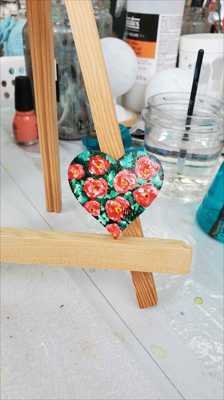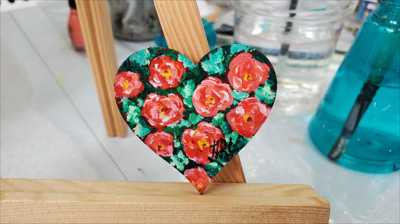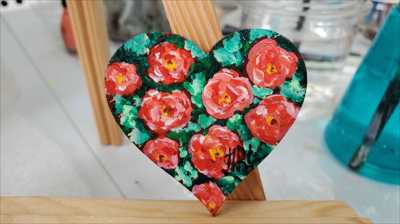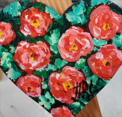 Маленькое сердце с розами в саду нарисован акриловыми красками и мастихином на деревянной основе и покрыт лаком.