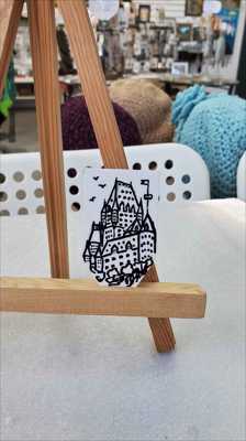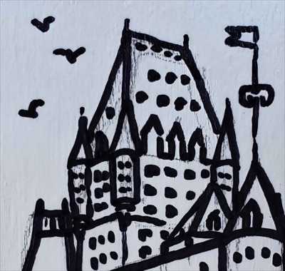 Магнит в форме многогранника нарисован маркером Шато Фронтенак 7 на деревянной основе и покрыт лаком.