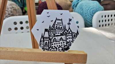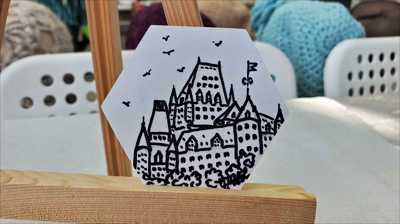 Магнит в форме шестиугольника нарисован маркером Шато Фронтенак 8
