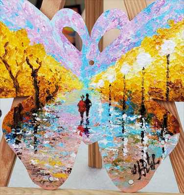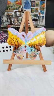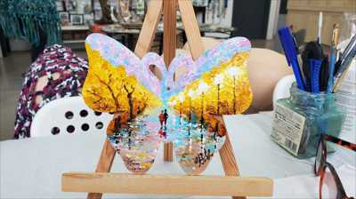Большая бабочка с картиной парка золотое настороение осени нарисована акриловыми красками на деревянной основе и покрыта лаком.