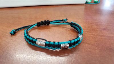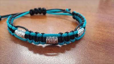 Браслет ручной работы макраме бирюза с черным стальные бусины