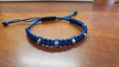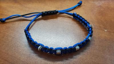 Браслет ручной работы макраме синий с черным стальные бусины