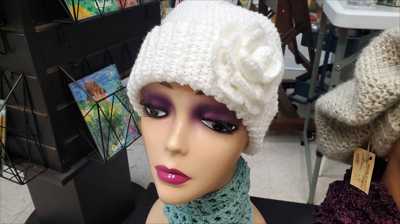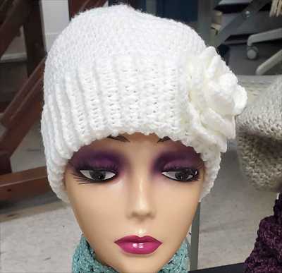 Шапка ярко белая с белой розой связана крючком. Полностью ручная работа.