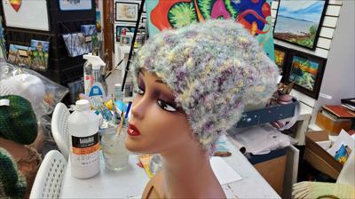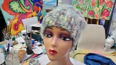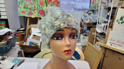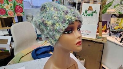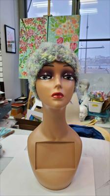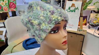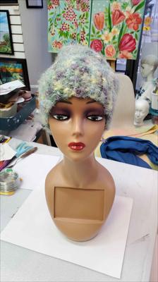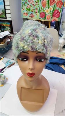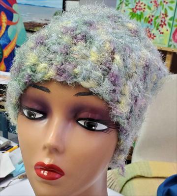 Шапка из турецкой пряжи зеленого цвета пушистая полностью связана крючком, ручная работа.