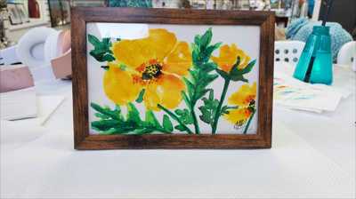 Акварель с лимонными маками нарисована акварелью на бумаге.
