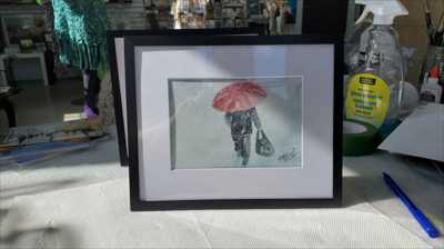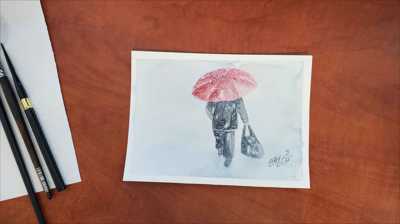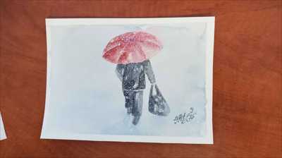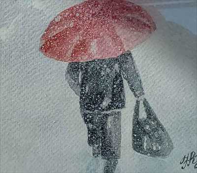 Вместе с дождями пришёл и первый мокрый снег, картина нарисована акварелью на бумаге и оформлена в паспарту и раму.