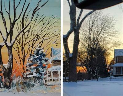 Ярко оранжевый закат набирает силу яркости, как мимолётное мгновение явился на небе и исчез, картина нарисована масляными красками на картоне и оформлена в раму.