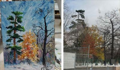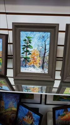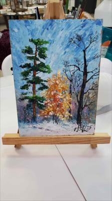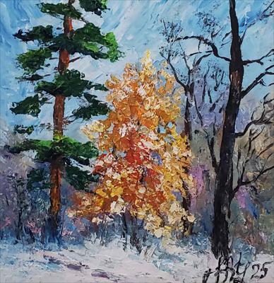 Первый снег в этом году уже выпал в ноябре, картина нарисована масляными красками на картоне и оформлена в раму.