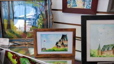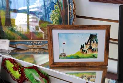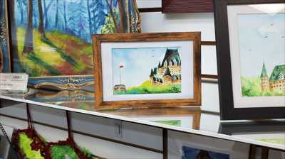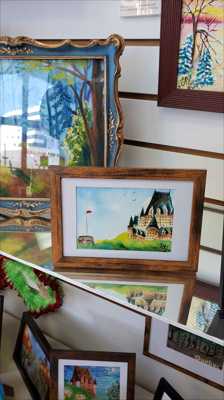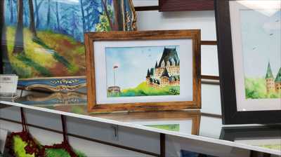 Акварель с замком и тремя птицами в паспарту, акварель на бумаге с конвертом.